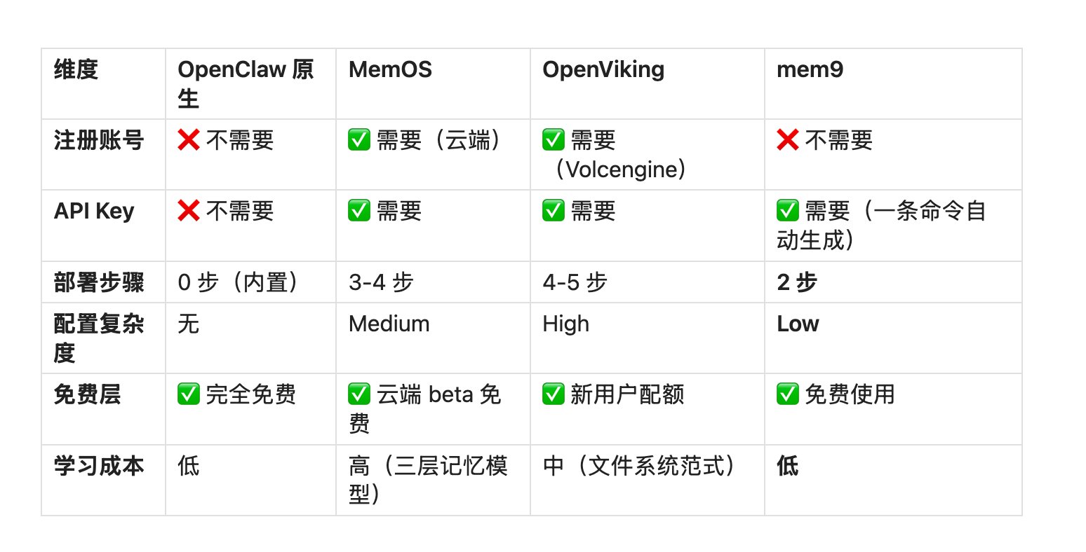 • OpenViking:需要 Volcengine 账号,生态绑定
