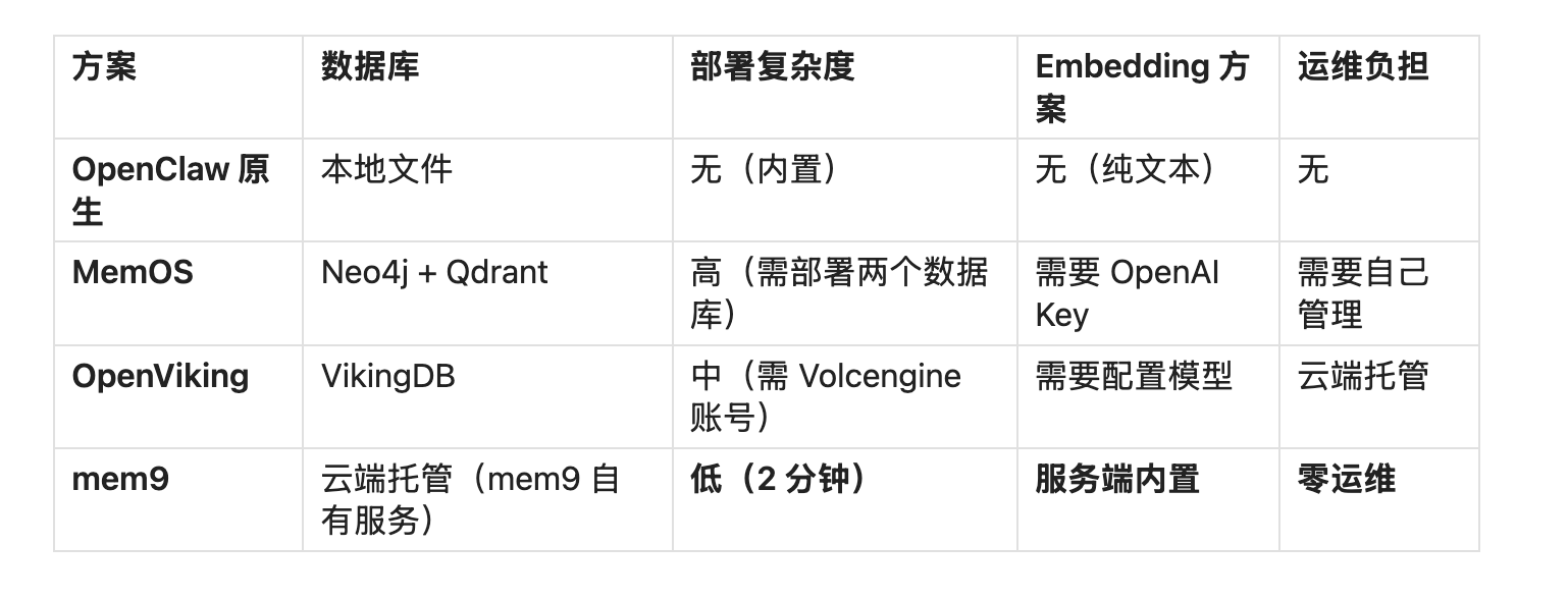 • ✅ 无需 OpenAI Key(mem9 服务端处理 Embedding)